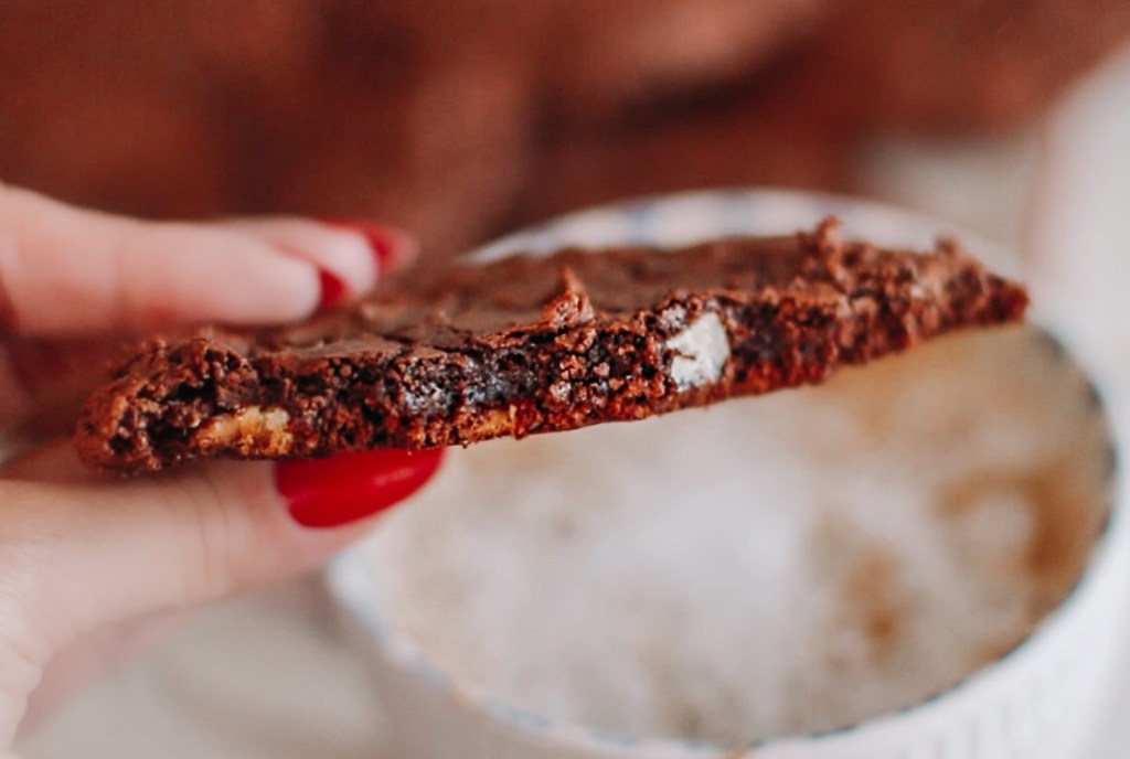 These cookies are what chocolate lovers dream of… They are fudgy, rich, have a slight coffee flavour, and are made with almond flour giving them a chewy consistency, as well as making them naturally gluten-free! They are studded with a little bit of white chocolate for a balanced flavour, but you can omit this, or replace this with dark, or milk chocolate, as well as nuts! The options are endless, and either way, the result is a crinkle topped, chocolatey brownie cookie, that is soft in the middle, chewy and crunchy on the edges! It’s like eating a brownie in cookie form… and what could be wrong with that?! Every time I make these cookies, they are gone within 24 hours (this is not an exaggeration). So, I am very excited to share this recipe, especially on time for the Holiday season. I love baking cookies during Christmas time, and I know many of you love making homemade cookie gift boxes. These would be the perfect edition as they are gluten-free and that is always a nice option in a cookie box. If you would like to see how I make these cookies, I have the video on my YouTube channel HERE. So now that I have you attention, let’s get to this delicious and easy Holiday recipe, although you can make this any time of the year!