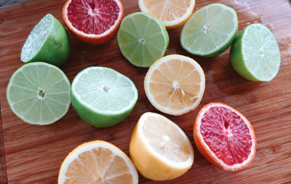 Finally, we can add our drained and cooked shrimp to this bowl of vegetables, and then we will be adding all of the citrus. Simply cut the orange, lemons, and limes in half, and add the juices to this large bowl of shrimps and vegetables. I use a citrus juicer that you can shop for on Amazon Canada HERE or Amazon USA HERE. It is so helpful, and easily a favourite kitchen tool, but if you don’t have this, use your hands and squeeze all the juice out.