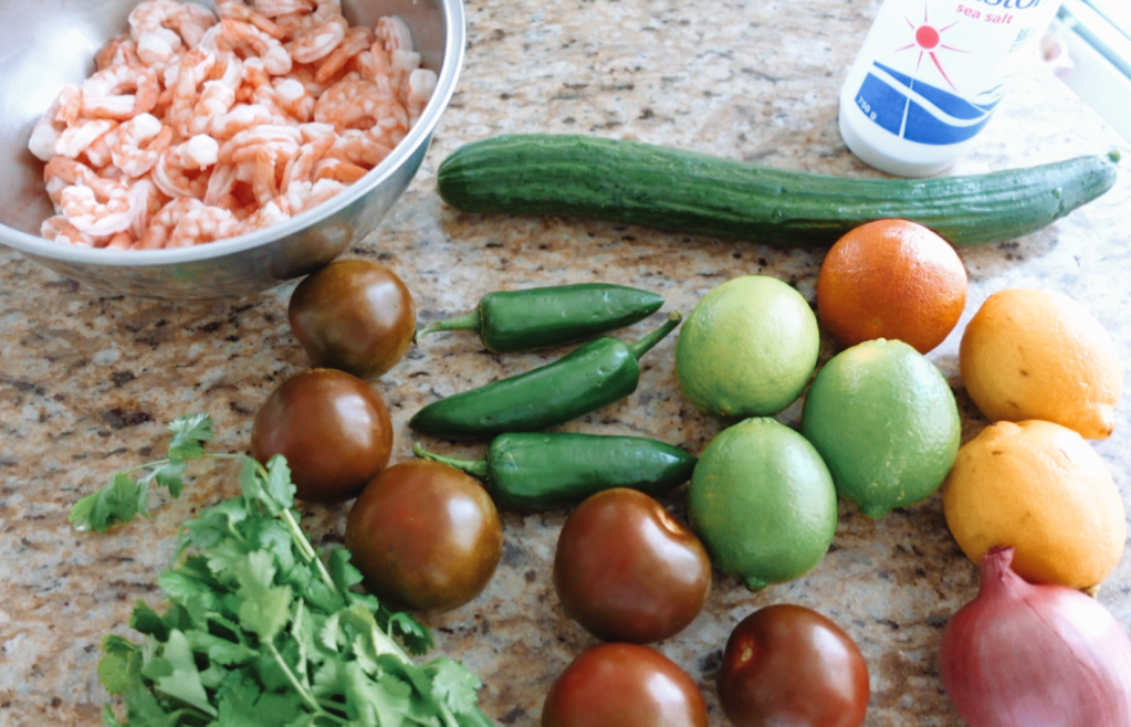 The first recipe I am sharing with you all in this new (and hopefully improved) year is an easy one! You could say it is as easy as it is delicious – Shrimp Ceviche. Ever since I started making this, I cannot stop. I think I’ve made this 4x this month, and after having finally perfected my recipe, I am ready to share it with all of you. I know this is more of a summer dish, but with some people trying to eat healthy in the New Year, I think this is the perfect “salad” recipe to share with you all. If you are unfamiliar with ceviche it is typically made with raw fish that cooks in the citrus fruits added. With this shrimp recipe however, it is best to pre-cook the shrimp, that way you don’t have to worry about eating raw shrimp. I was inspired by a friend of mine who always brings a delicious ceviche to parties, and so I created this dish based on her recipe. I absolutely love the freshness of the citrus and vegetables in this dish, they perfectly compliment the shrimp. If you would like a video tutorial of me making this Ceviche you can watch that HERE. So without talking too much, let’s get started!